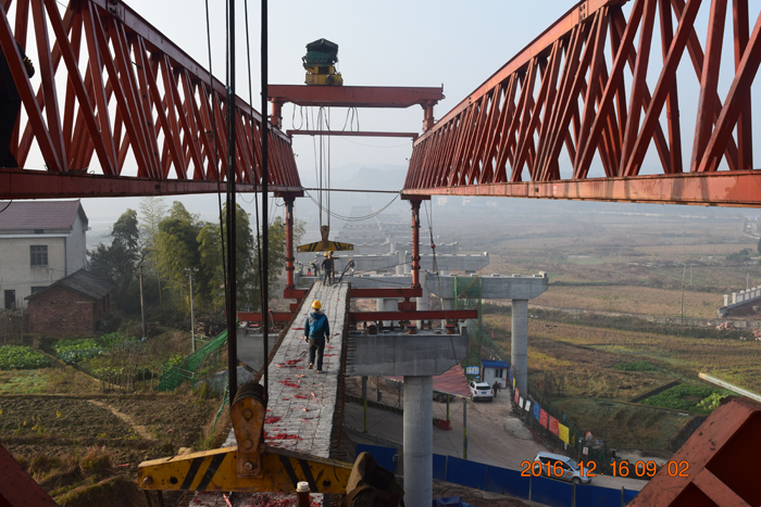2016年12月15日上午11時整,隨著施工現(xiàn)場指揮人員準(zhǔn)確到位的指揮和橋梁架設(shè)人員有條不紊地操作,益婁高速公路第11標(biāo)段中陽大橋首片T梁穩(wěn)穩(wěn)落在左幅第1跨墩臺上,至此,宣告中陽大橋第一片梁架設(shè)成功,為整體施工向節(jié)點工期又邁進了堅實的一步。