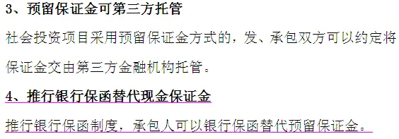 2017年7月04日住房城鄉(xiāng)建設部、財政部發(fā)布新版《建設工程質量保證金管理辦法》中也已明確推行銀行保函制度,銀行保函可替代預留保證金。